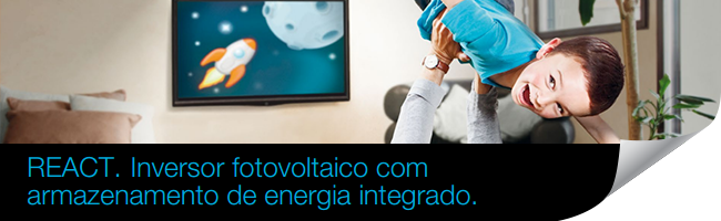 Com o sistema REACT, a ABB oferece-lhe uma solução inovadora para recolher e armazenar energia tornando-a disponível quando necessária, depois do pôr do sol, durante a noite e às primeiras horas da manhã. Agora, com o REACT as vantagens do seu sistema fotovoltaico são claras como o sol: eficiência, economia, flexibilidade.