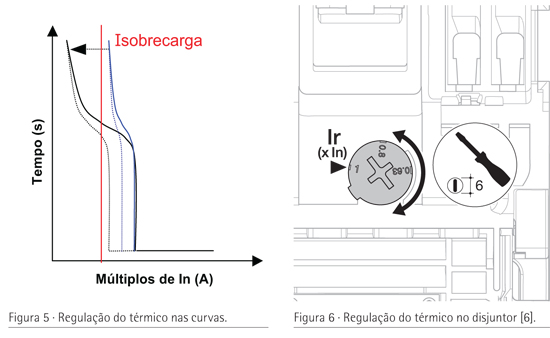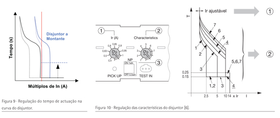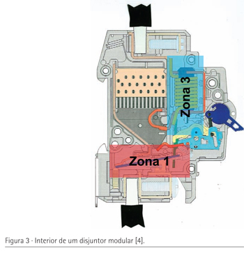 A Figura 2 representa a característica tempo/ corrente destes disjuntores e a Figura 3 mostra a localização no interior do disjuntor dos relés magnético e térmico: