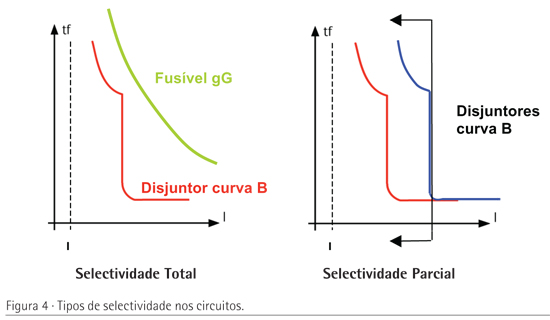 Numa instalação podem existir dois tipos de selectividade dimensionada pelo projectista, total e parcial. A Figura 4 mostra a diferença entre estes dois tipos de selectividade: