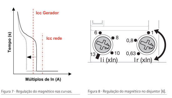 Situação 2: Se a corrente de curto-circuito máxima do gerador for inferior à corrente de curto-circuito fornecida pela rede, um disjuntor convencional pode não ver esse curto-circuito por assumir esse defeito como uma sobrecarga, extinguindo-o num tempo longo, sendo que segundo as RTIEBT [1] esta solução terá que ser solucionada, uma vez que a “corrente de curto-circuito mínima (Icc) não deve ser inferior a Ia” (valor de corrente a partir da qual o relé magnético do disjuntor pode entrar em funcionamento). A solução neste caso passa pela utilização de um disjuntor com magnético regulável e reduzir o valor do mesmo, por forma a interpretar essa corrente como um curto-circuito.