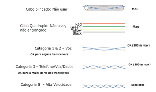 Vários equipamentos requerem baixa potência e baixas frequências para executarem as operações de transferência de dados e sinais. É o caso dos telefones, termóstatos, sistemas de segurança, colunas de som, intercomunicadores, autómatos industriais e outros. Estes equipamentos funcionam, geralmente, entre tensões dos 5 aos 24 Volts. Os cabos de pares entrançados (UTP - Unbalanced Twisted Pair) dividem-se em categorias: